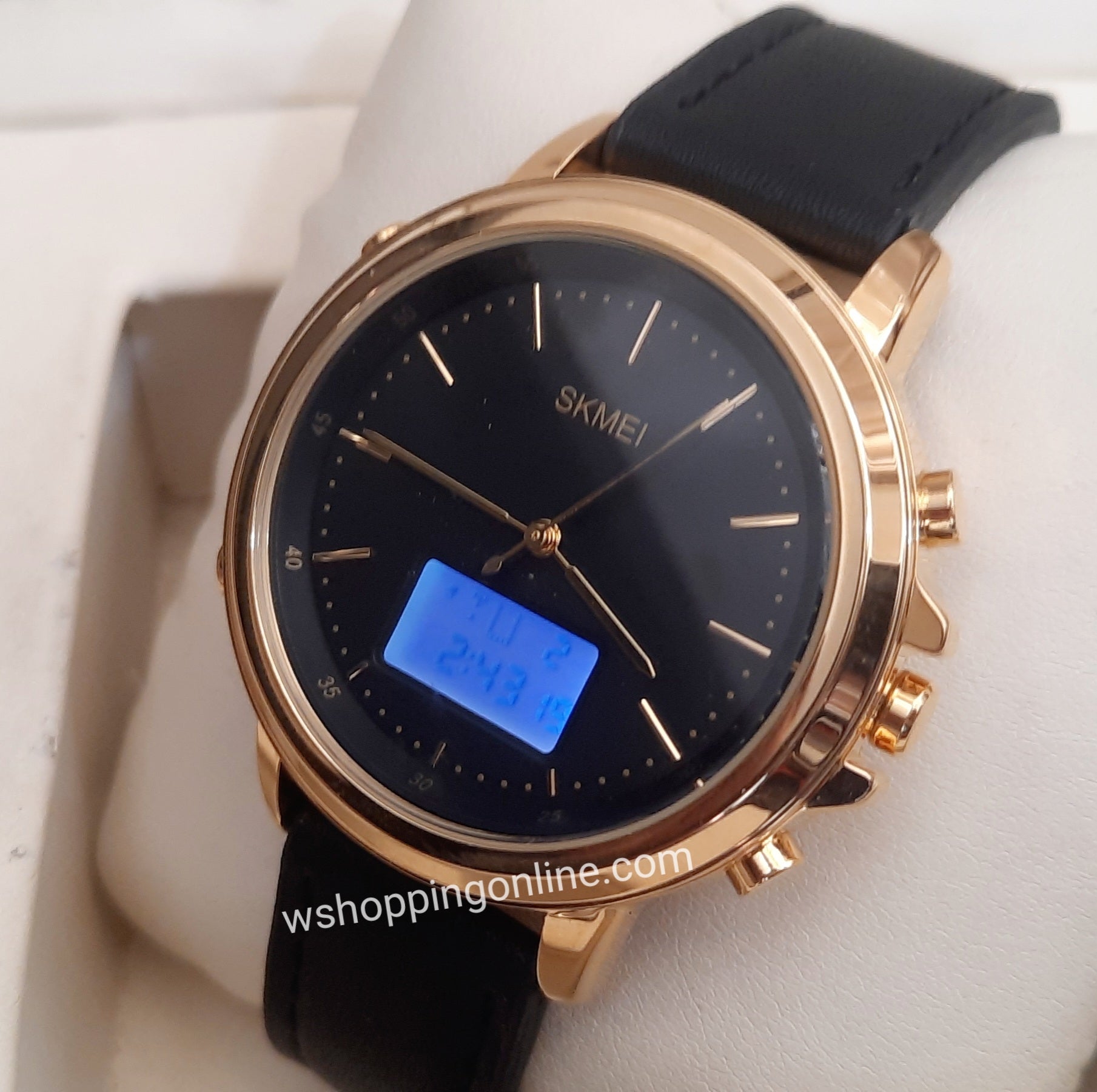 Skmei Golden Black Leather Original Watch